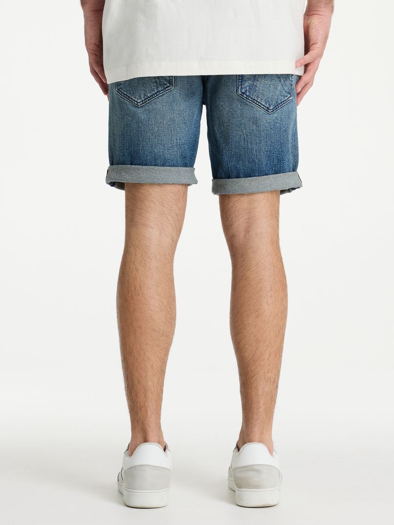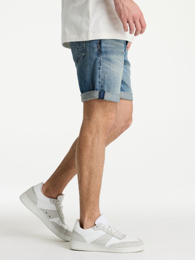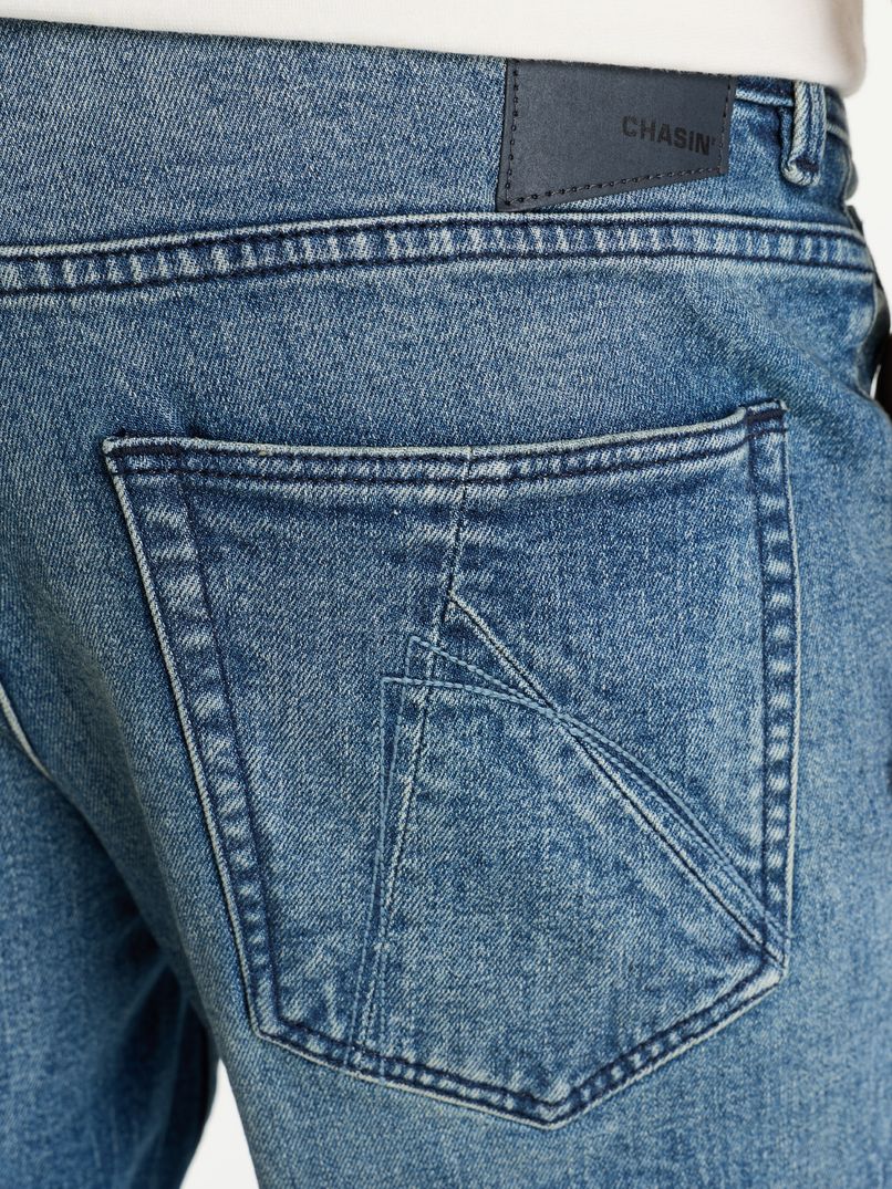 Die Ego.S Vapor ist eine blaue Denim-Shorts mit schmaler Passform. Durch diese Passform liegen die Hosenbeine eng an den Oberschenkeln an, aber dank des bequemen Stretchmaterials hast du immer ausreichend Bewegungsfreiheit. Die Ego.S Vapor ist mit dem charakteristischen CHASIN'-3-Stück-Logo auf den Gesäßtaschen und dem Branding an der Seite und der Münztasche versehen.
