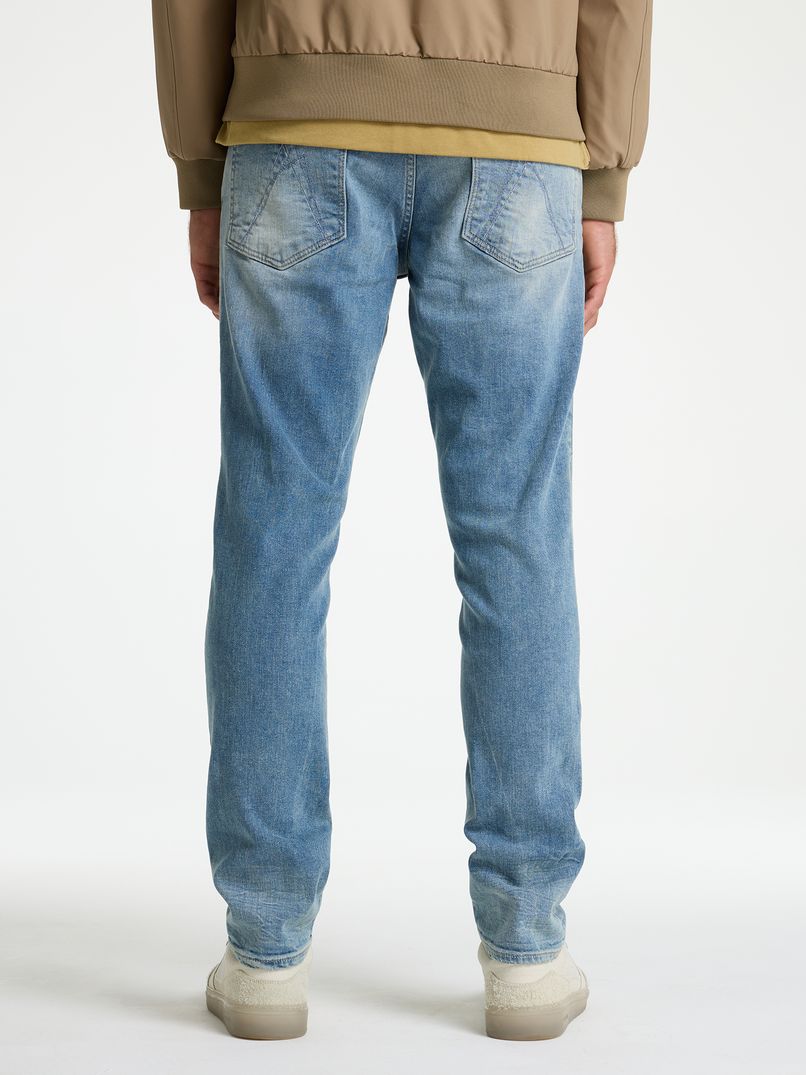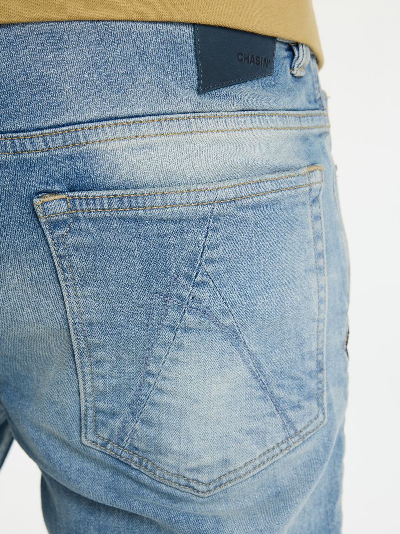 Die Evan Ignite ist eine Slim-Fit-Jeans, die dank ihrer Passform über die gesamte Länge der Beine eng anliegt. Diese Jeans ist aus einem Stretchmaterial gefertigt, wodurch sie sich angenehm anfühlt und Ihnen ausreichend Bewegungsfreiheit bietet. Die Evan Ignite hat eine blaue Waschung mit Used-Look und ist mit charakteristischen CHASIN'-Details auf den Gesäßtaschen und an den Seiten versehen.
