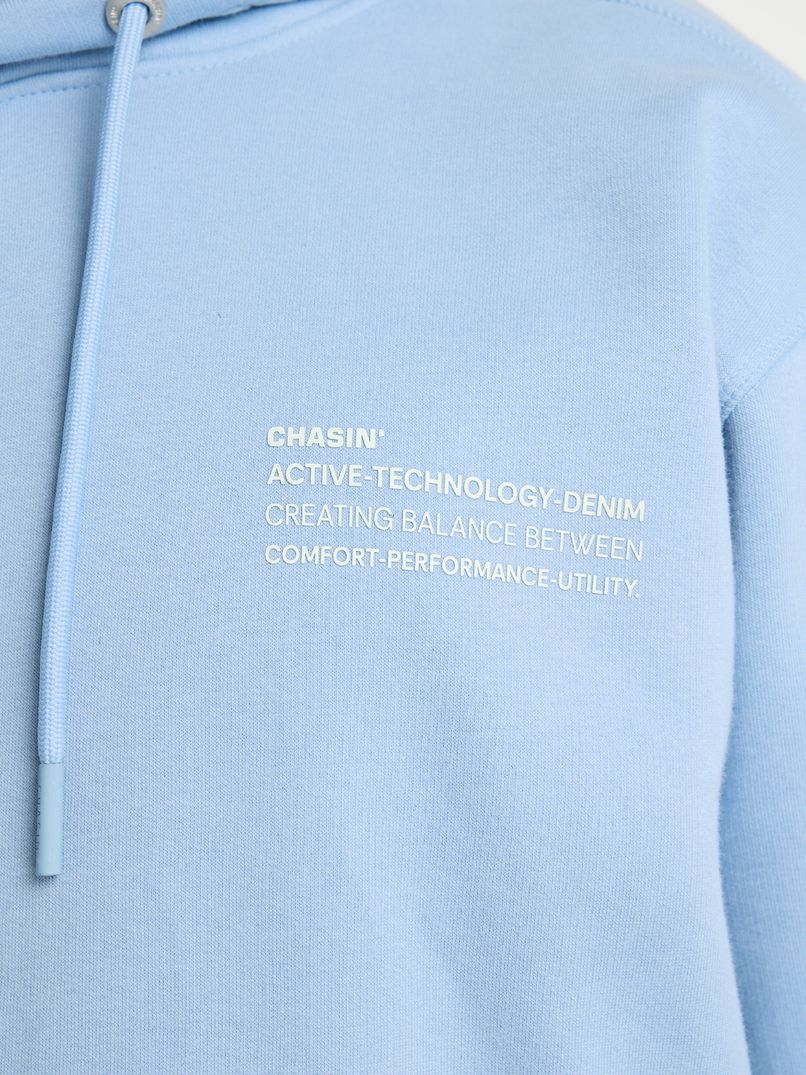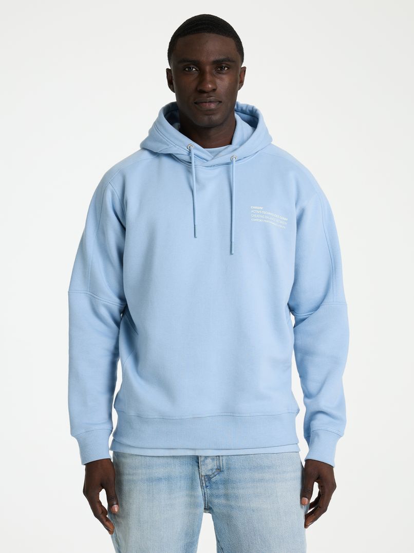 Der Mayor Hood ist ein hellblauer Hoodie mit lockerer Passform und einem 3D-Artwork auf dem Rücken. Dank der lockeren Passform sitzt der Pullover immer bequem und zeichnet sich durch auffällige Nähte an den Ärmeln und am Rücken aus, die ihm einen sportlichen Look verleihen. Die elastischen Bündchen verleihen dem Mayor Hood außerdem eine kastenförmige Silhouette, ideal zum Kombinieren mit einem schlichten weißen T-Shirt und einer schönen Jeans. Dieser Hoodie ist außerdem mit einem dezenten CHASIN'-Logo auf der Brust verziert.