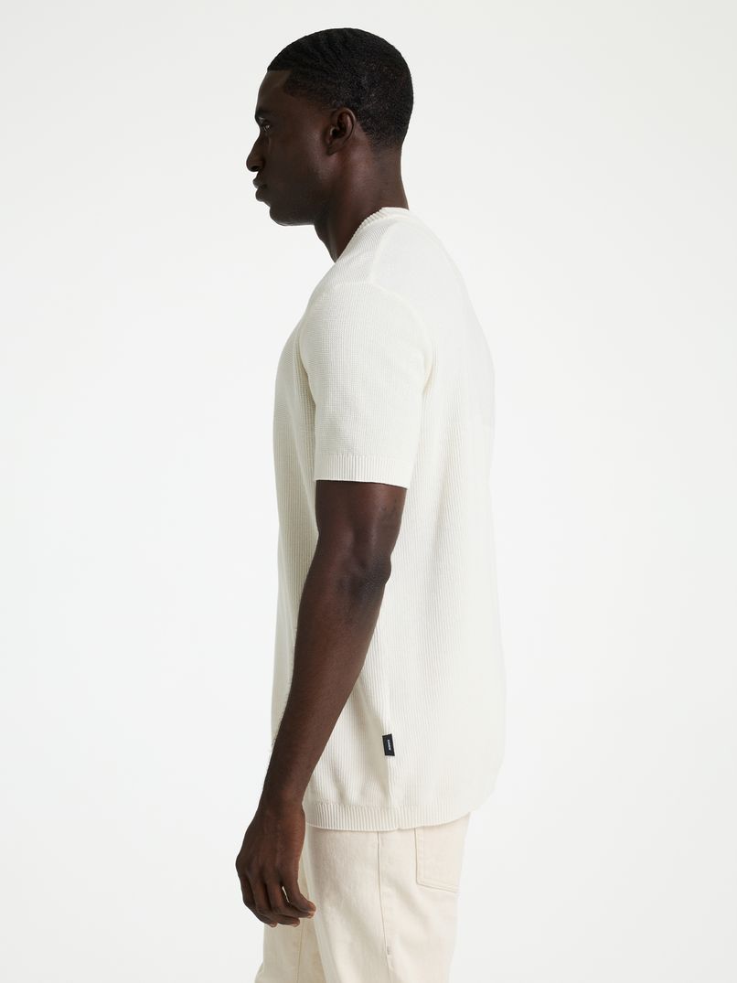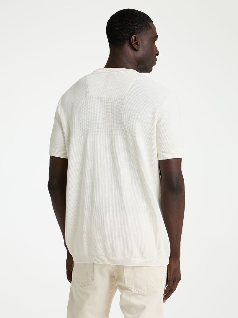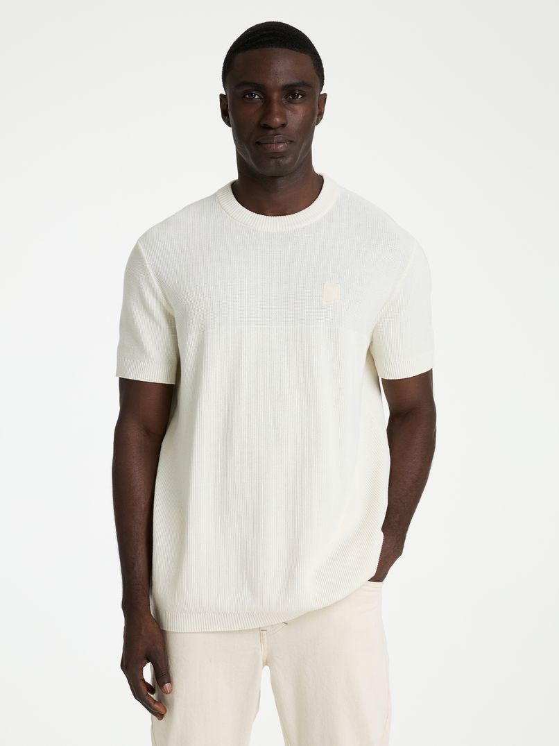 Das Otiz ist ein gestricktes T-Shirt mit normaler Passform und Rundhalsausschnitt. Durch seine Strickstruktur ist dieses T-Shirt die perfekte Wahl für legere Anlässe, beispielsweise in Kombination mit einer beigen Jeans. Dank seiner normalen Passform sitzt das Otiz immer bequem, auch an wärmeren Tagen. Das T-Shirt ist mit einem farblich abgestimmten CHASIN'-Logo auf der Brust und elastischen Bündchen versehen, was ihm eine schöne Passform verleiht.