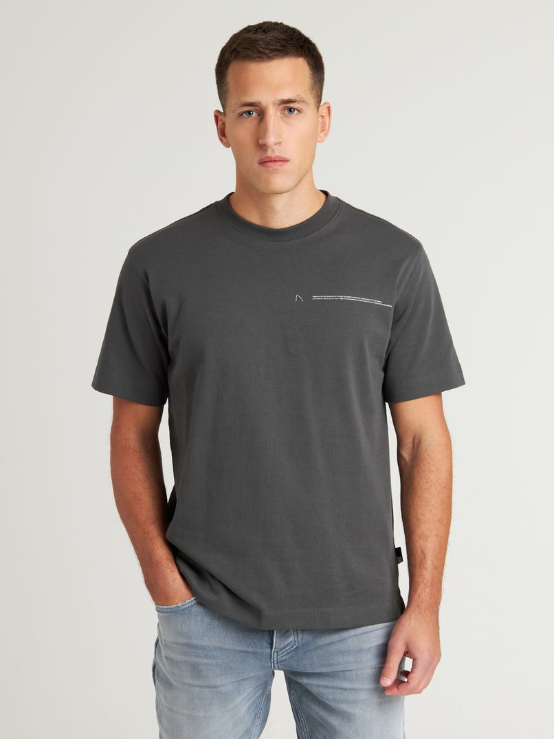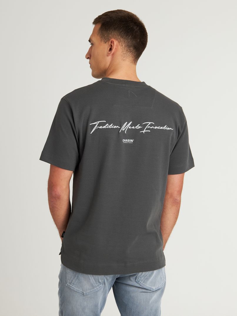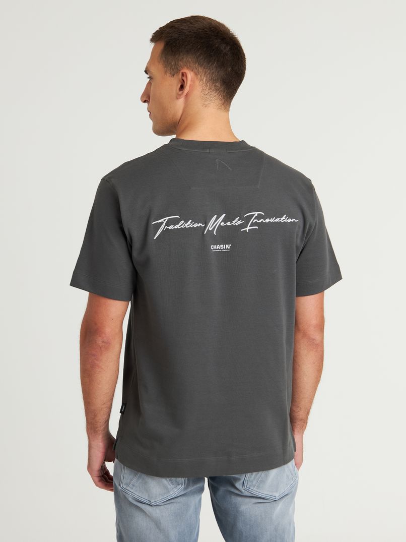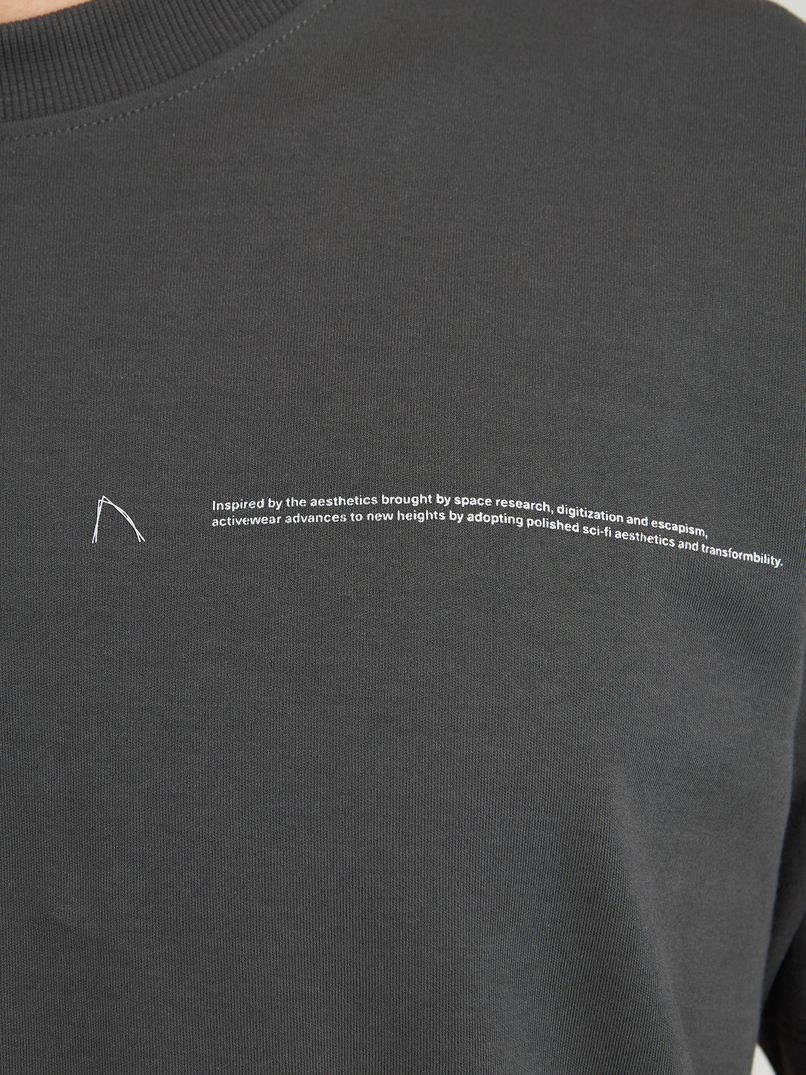 Das Script ist ein loose fit T-Shirt. Dieses T-Shirt verfügt über einen großen 3D-Print auf dem Rücken und einen dezenten Letterprint auf der Brust.