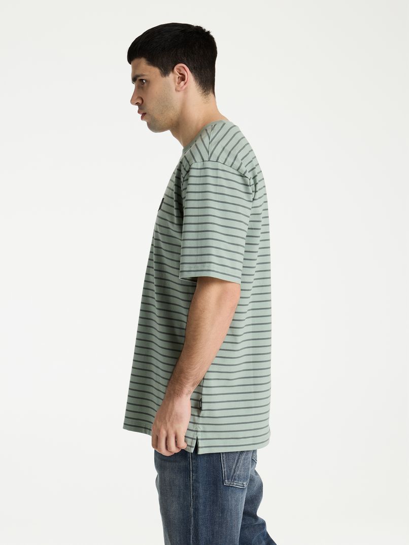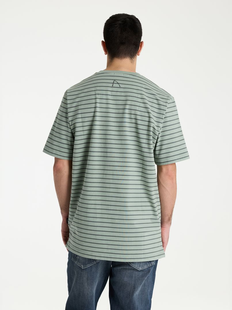 Das Shore ist ein Regular-Fit-T-Shirt mit Streifenmuster und Rundhalsausschnitt. Dieses T-Shirt besteht aus 95 % Baumwolle und 5 % Elasthan, was für zusätzlichen Tragekomfort und Bewegungsfreiheit sorgt. Das Shore ist mit einem CHASIN'-Logo auf der Brust und einem dezenten Branding auf dem Rücken versehen.