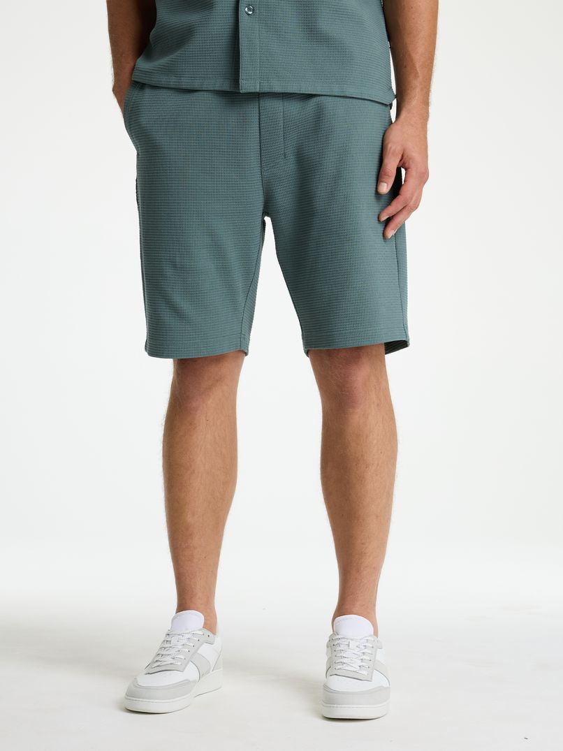 Die Stone.S Structure ist eine kurze Hose aus 87 % Baumwolle und 17 % Polyester, die durch eine spezielle Webtechnik eine Waffelstruktur aufweist. Diese bequeme kurze Hose hat eine normale Passform und verfügt über zwei Seitentaschen und eine Gesäßtasche mit kleinem CHASIN'-Logo. Die Stone.S Structure lässt sich mit dem elastischen Bund und dem Kordelzugverschluss ganz einfach perfekt anpassen. Kombinieren Sie sie mit einem passenden Hemd und Ihr Outfit ist komplett.